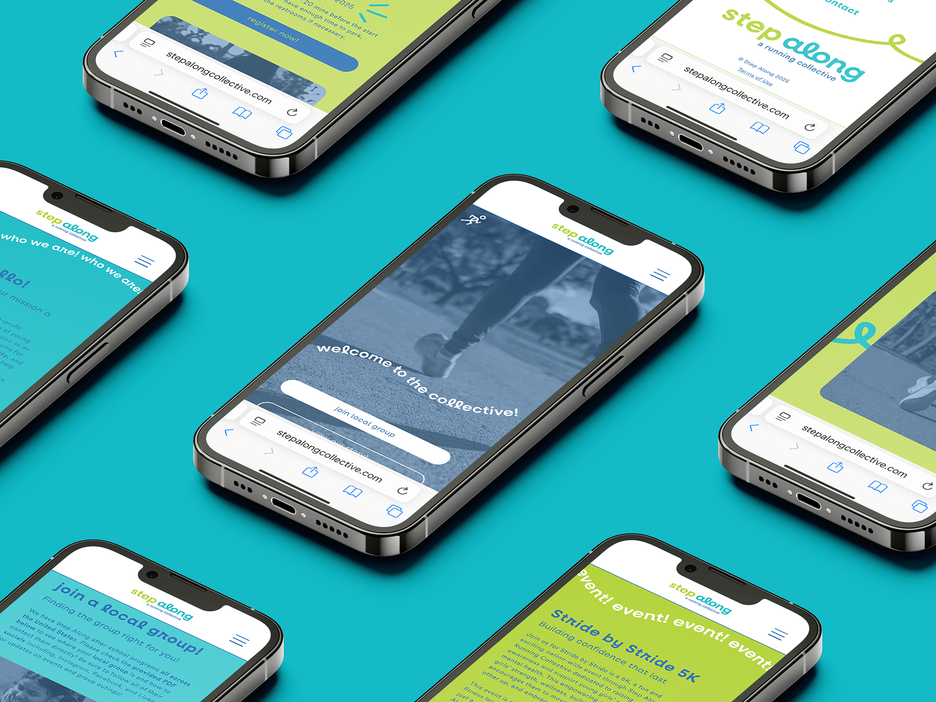 Women’s involvement in sports is a catalyst for young girls to build confidence, improve their mental health, and foster community. However, historically women have received less support and media coverage in sports than men. To address this imbalance, Step Along Running Collective was designed as an all-encompassing branding charity campaign to promote and inspire young girls to get involved in sports across the United States. With opportunities to participate in their local and nationwide events, the organization hopes to reach all young girls seeking community and connection with their peers. By emphasizing self-confidence and inclusivity, the visual identity and online presence highlights the core values of the brand.
