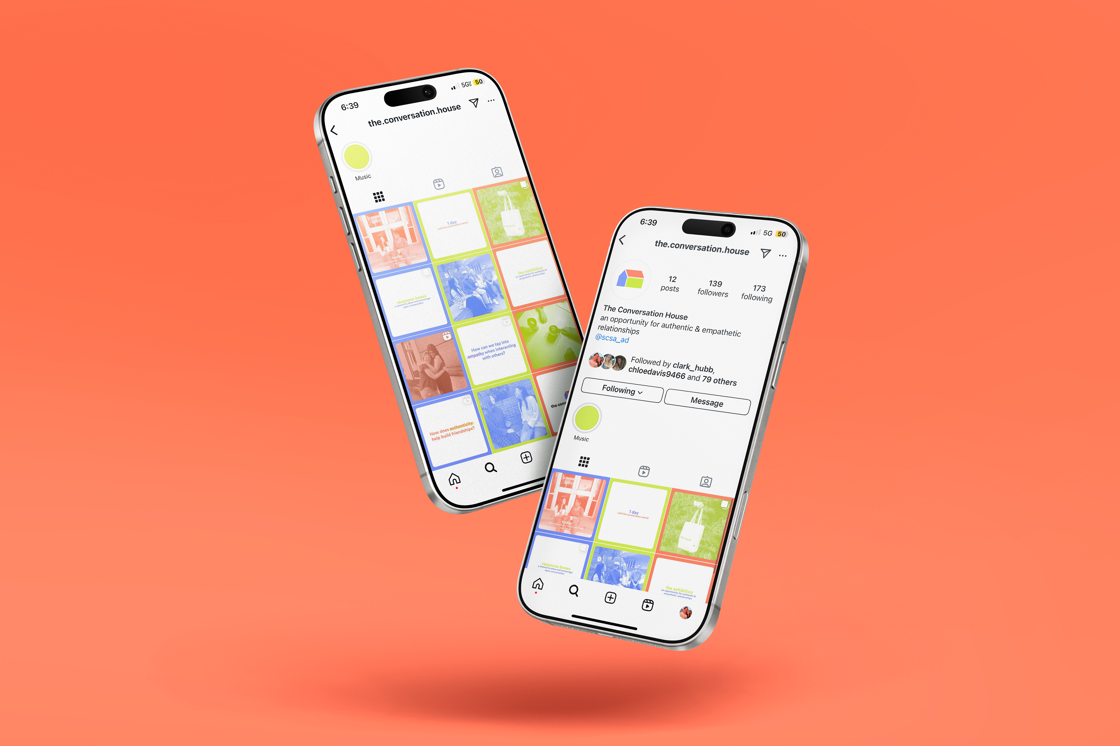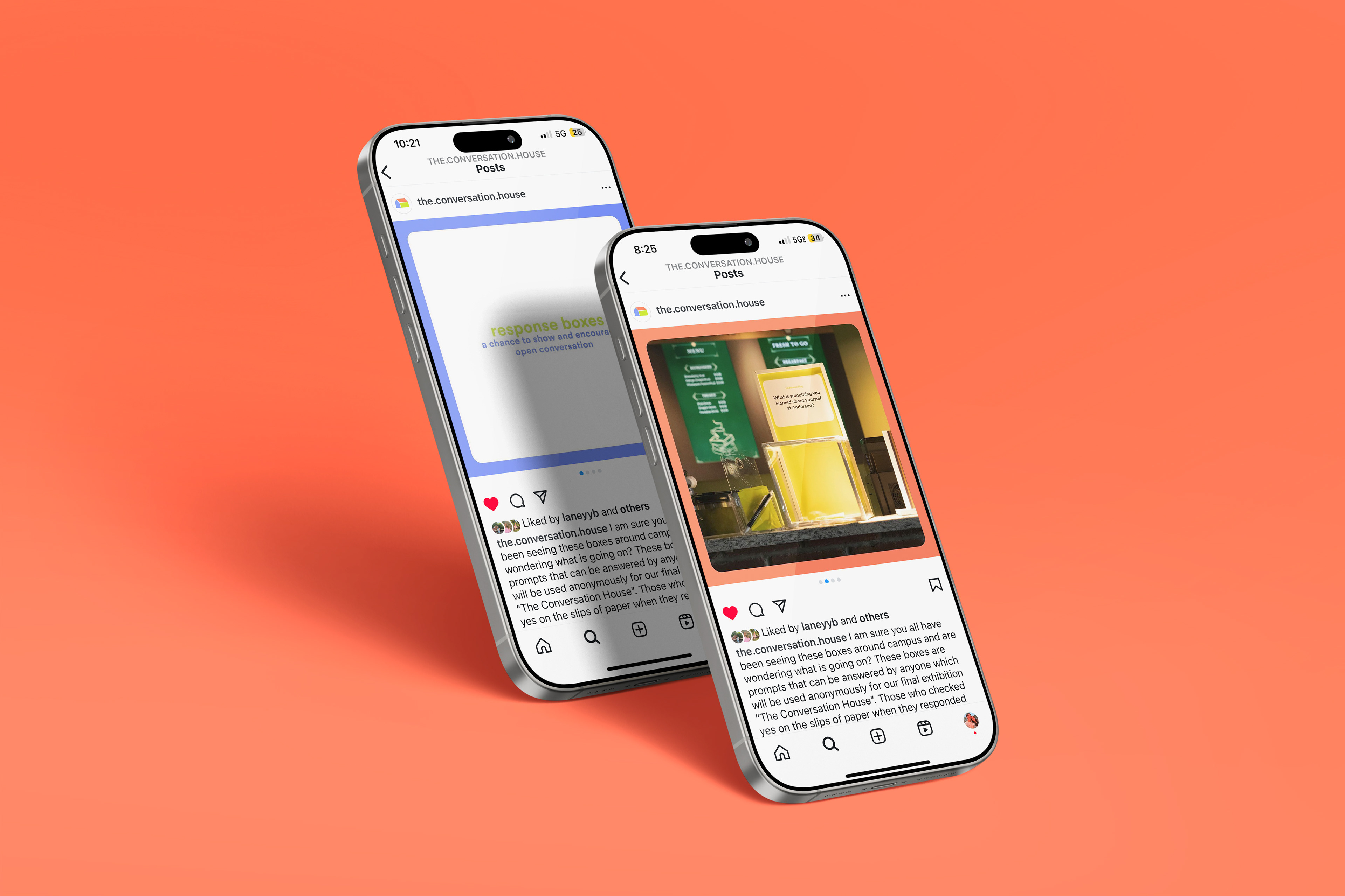 To build anticipation for The Conversation House exhibition, the Design for Social Value junior cohort launched a three-week social campaign on Instagram and throughout the Anderson University campus. This campaign strived to spark curiosity and initiate conversations around community and vulnerability, drawing attention to the upcoming event. Through a mix of Instagram posts, reels, and stories, we connected with our target audience—college students at Anderson University. In tandem with the digital campaign, physical conversation boxes were placed in high-traffic areas on campus, inviting students to submit anonymous, personal responses to questions about the community. These responses were then incorporated into both the social campaign and the exhibition, helping to bridge the gap between online engagement and in-person interaction.